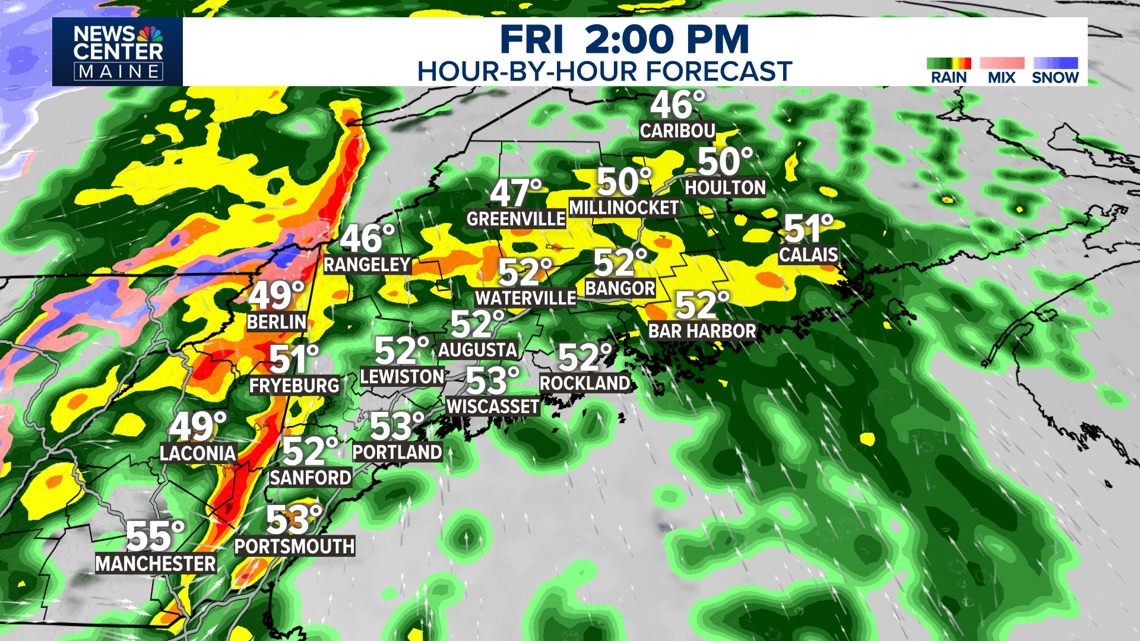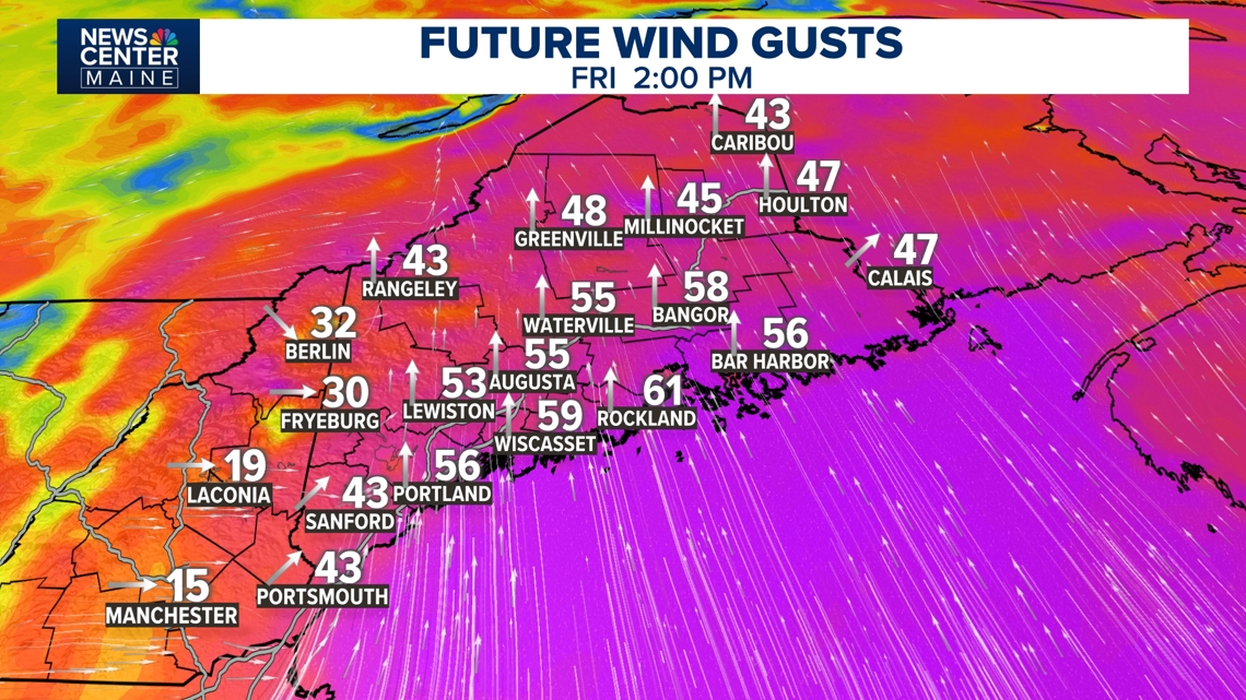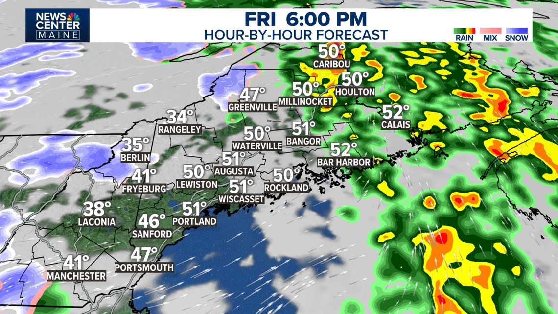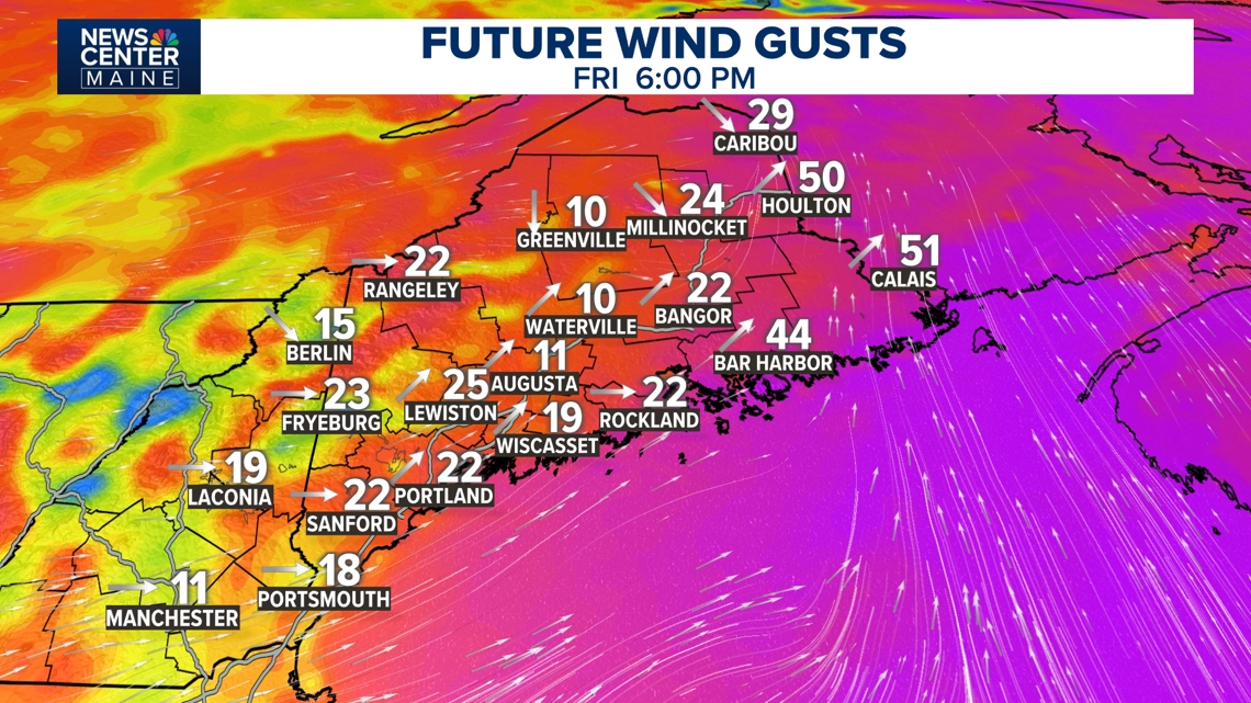 MAINE, USA — It's been a cold month, but we're getting a big warm-up ahead of the next cold front. Temperatures are rising into the 50s, but it's coming with rain and wind.