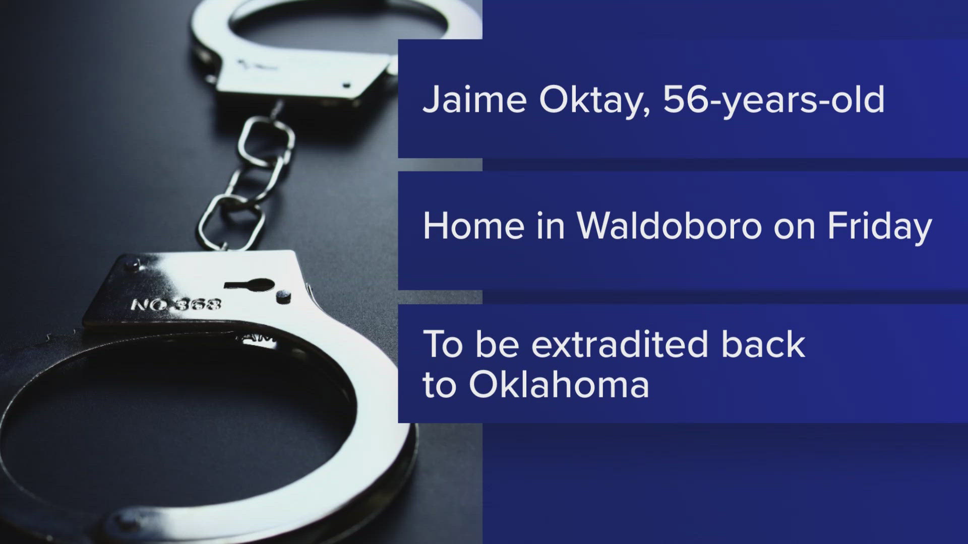 Investigators with the Northern Oklahoma Violent Crimes Task Force and the U.S. Marshals Service (USMS) determined 56-year-old Jaime Oktay left Oklahoma and was hiding in Maine, according to a press release shared Monday.