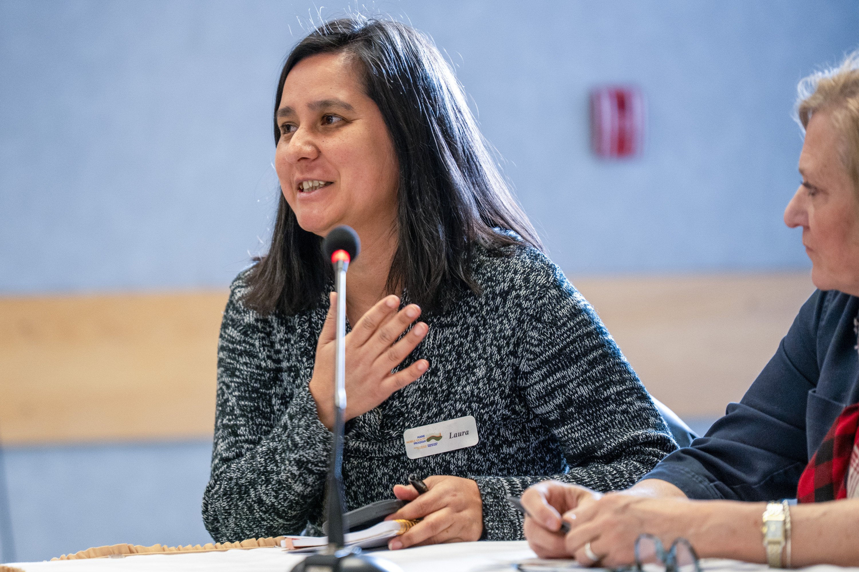 Laura Valencia, the director of behavioral health at the Maine Mobile Health Program, speaks Tuesday during the Health & Wellness in Agriculture and Forestry panel discussion at the 85th annual Maine Agricultural Trades Show in the Augusta Civic Center in Augusta. (Joe Phelan/Staff Photographer)