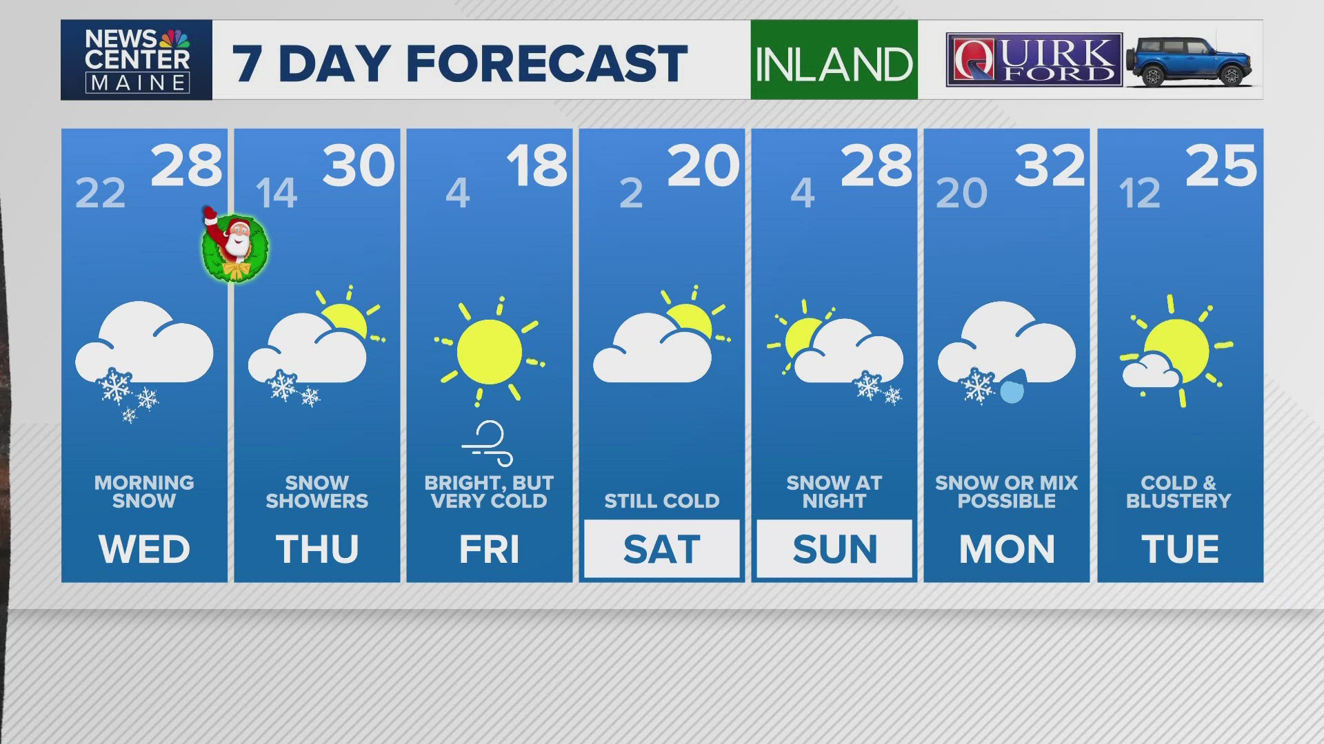 PORTLAND, Maine — It was looking bleak for a white Christmas when rain and warmth erased all our snow late last week, but a clipper system moving in will save the day.